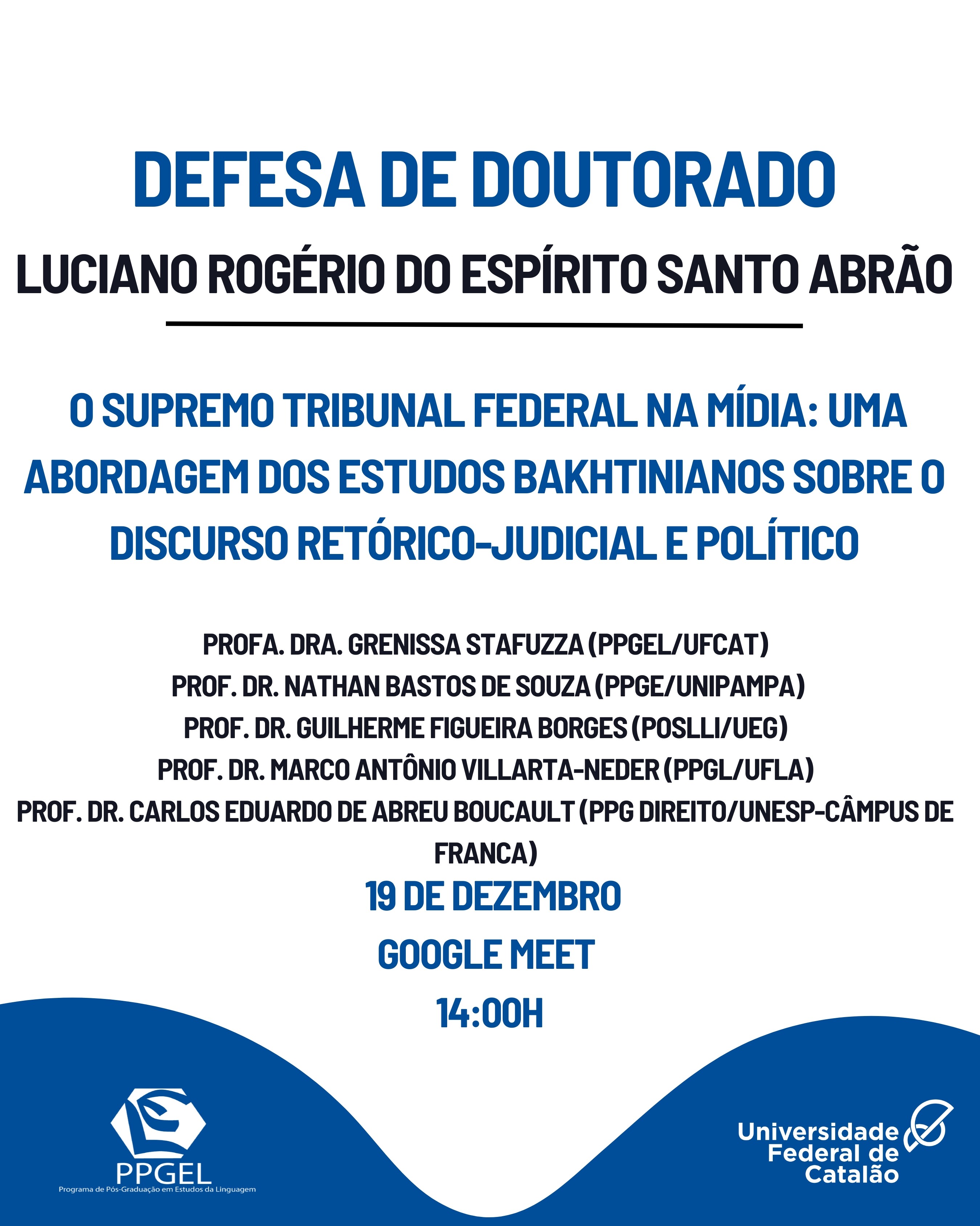 | URL relacionada: https://ppgel.ufcat.edu.br/pt-br/noticias/defesa-de-tese-do-discente-luciano-rogerio-do-espirito-santo-abrao |